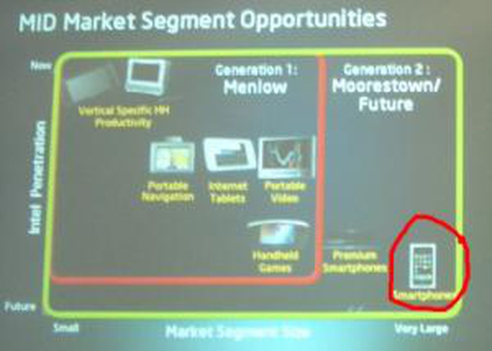 DigiTimes первым сделал такое заявление в октябре 2007 года, ссылаясь на обычные «источники среди OEM-производителей». Теперь The Inquirer публикует слайд из презентации Intel на CeBIT, на котором iPhone изображен как смартфон на платформе Moorestown.