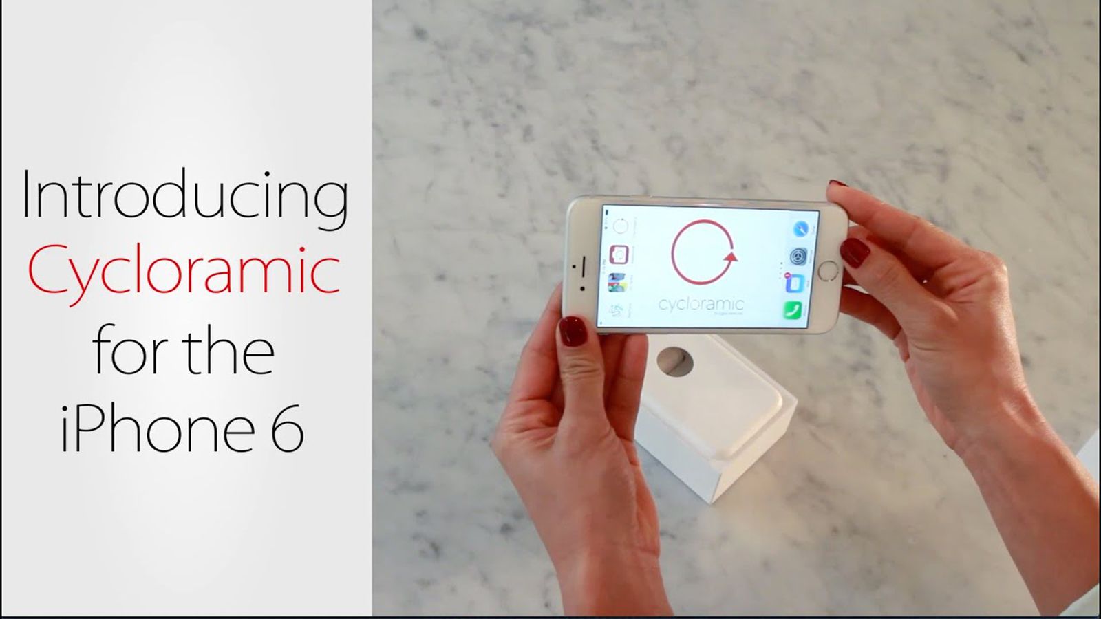 Однако у iPhone 6 скругленные края не позволяют приложению Cycloramic работать прежним образом — телефон больше нельзя сбалансировать на ребре, чтобы он свободно вращался. Команда Cycloramic нашла инновационное решение для создания 360-градусной панорамной видеосъемки без помощи рук на iPhone 6, используя адаптер питания, который поставляется с обоими телефонами.