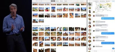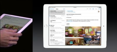10:20 утра: Демонстрация улучшений полноэкранного режима в Mail, вкладок в окне написания письма, возможность скрывать незавершенные сообщения и возвращаться к основному почтовому ящику.