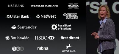 10:46 утра: В июле. Ulster Bank, NatWest, Amex, Santander, RBS, Nationwide, HSBC, First Direct. 70% кредитных и дебетовых карт в Великобритании.
