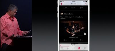 12:06 дня: Эдди Кью демонстрирует Apple Music.