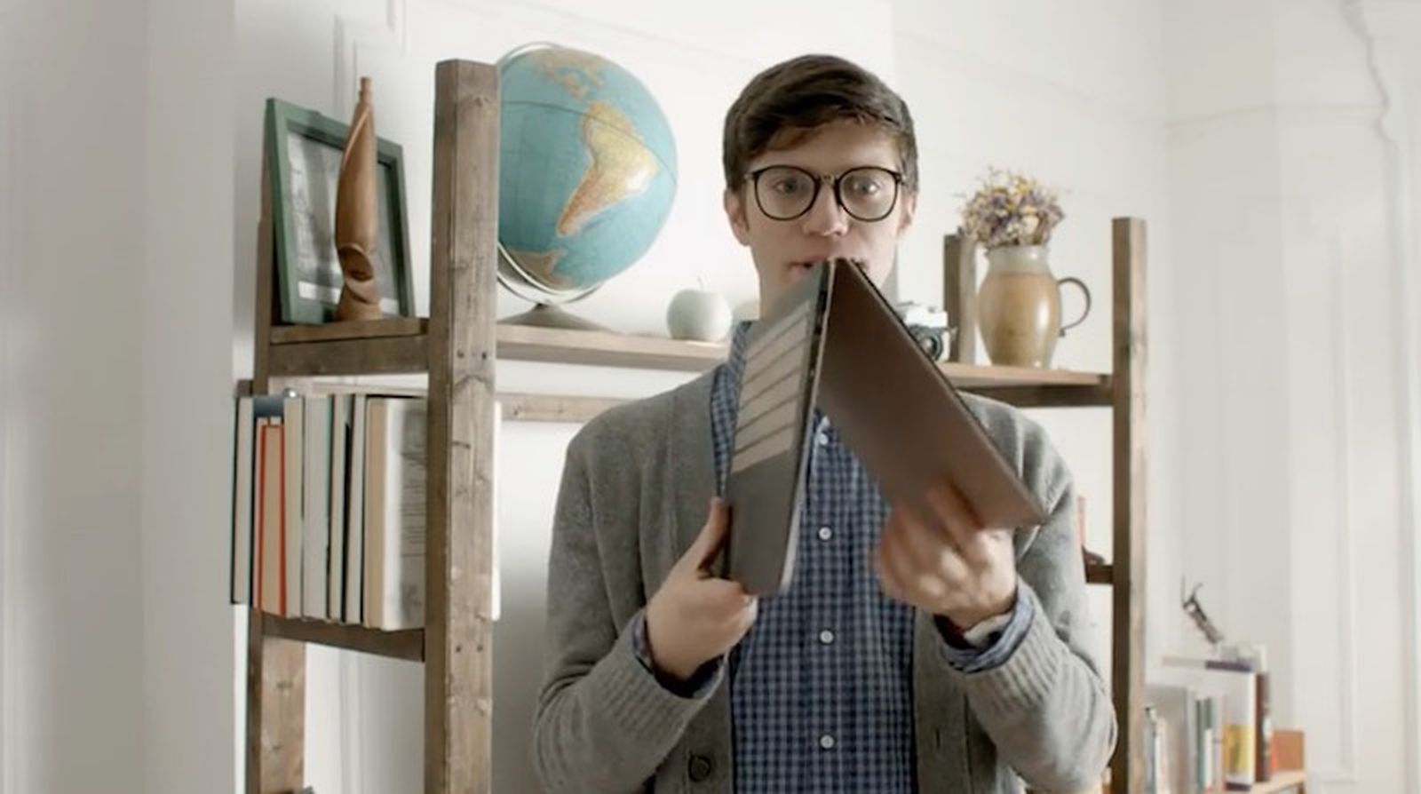 Интересно, что в рекламе даже упоминается MacRumors, когда «iGuy» играет с реверсивным шарниром Yoga: