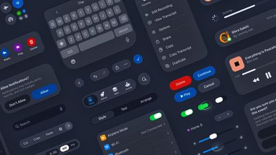 Навигационные панели, боковые панели, меню в стиле карточек, уведомления, кнопки, переключатели, строки поиска и другие элементы интерфейса имеют более скругленный вид. Отдельные кнопки полностью круглые, например, в Центре управления, в то время как навигационные панели имеют форму таблетки с отчетливо скругленными углами. Переключатели и уведомления также имеют удлиненную форму таблетки, а карточки также имеют более скругленные углы. Клавиатура имеет скругленные края сверху.