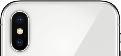 На задней панели iPhone X расположена двойная камера с вертикальной ориентацией. Камера по-прежнему немного выступает из корпуса устройства, а между двумя объективами расположены четырехсветодиодная вспышка и микрофон.