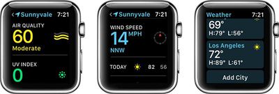 Погода — Как и приложение «Погода» на iPhone, приложение «Погода» на Apple Watch теперь предлагает информацию о качестве воздуха, скорости ветра, УФ-индексе и направлении ветра. Теперь вы также можете добавлять города прямо на Apple Watch.