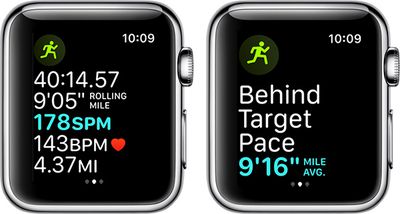 Новый «скользящий темп мили» позволяет узнать, как быстро вы пробежали предыдущую милю, а «каденс» предоставляет данные о количестве шагов в минуту. Также можно установить настраиваемое оповещение о темпе, при котором Apple Watch будет касаться вашего запястья, если вы движетесь быстрее или медленнее заданного темпа.